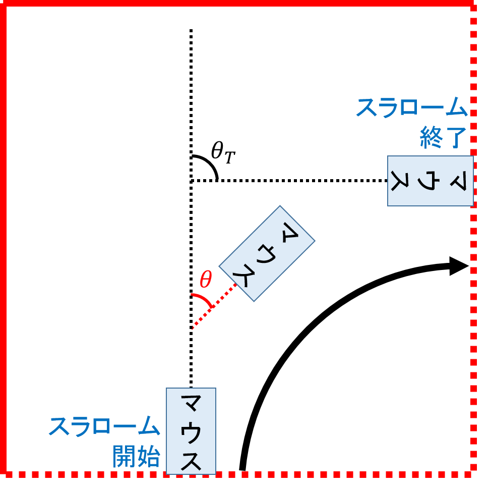 前回の記事からスラロームパラメータとは、「角加速度、目標角度、加速角度、重心速度」だとわかりました。これらをそれぞれ以下のように置くことにします。